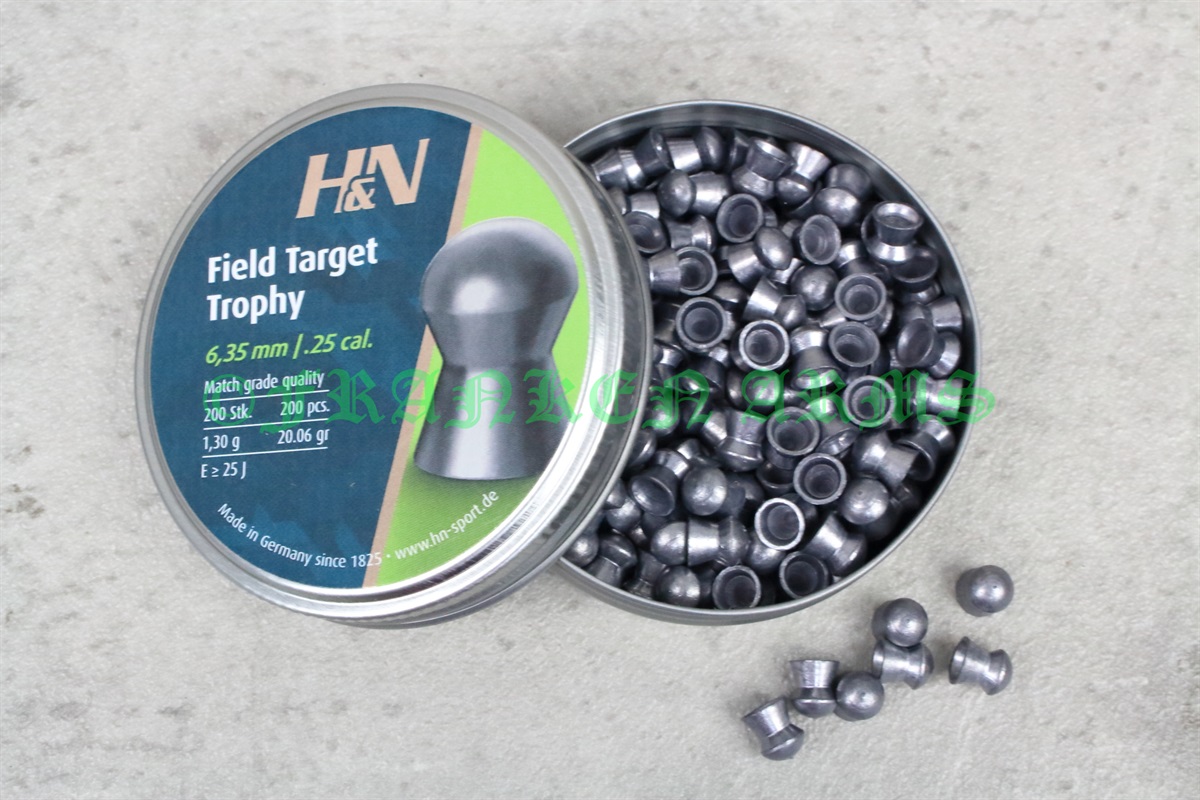 Mit einem Gewicht von 1,3g handelt es sich bei der Luftgewehrkugel Field Target Trophy 6,35mm um eine mittelschwere, hochpräzise Wettkampf- und Jagdkugel mit flacher Flugbahn für mittlere Distanzen.